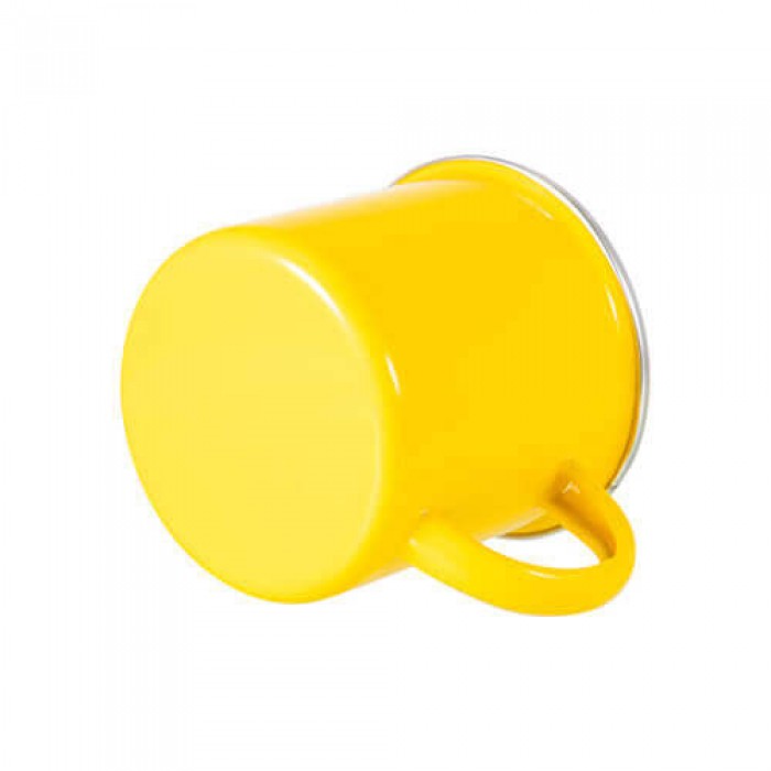 Cană metalică emailată cu ureche pentru imprimare prin sublimare.